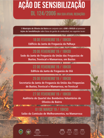 03-FEV-2023A EDP Distribuição – Energia, S.A. vai promover as ações de gestão de combustível nas faixas das linhas de Alta e Média Tensão abrangidas pelo Plano Municipal de Defesa da Floresta Contra Incêndios de Oliveira do Bairro e que integram a Rede Secundária de Faixas de Gestão de Combustível.Estas ações passam pela limpeza do mato, desramação de árvores cujos ramos estejam próximos dos condutores e corte de árvores e serão efetuadas na faixa correspondente à projeção vertical dos cabos condutores exteriores, acrescidos de uma faixa de largura não inferior a 10 ou 7 m para cada um dos lados, consoante se trate de linhas de Alta ou Média Tensão.Os proprietários, seus representantes ou administradores das propriedades, poderão acompanhar os trabalhos e deverão proceder à imediata remoção dos materiais resultantes das ações de gestão de combustível (ver mapa em baixo). Notícia replicada do site da Câmara Municipal de Oliveira do BairroMais informação nos links abaixo indicados:Aviso EDPMapa